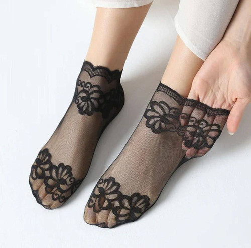 خرید جوراب دخترانه خارجی شیشه ای مجلسی توری