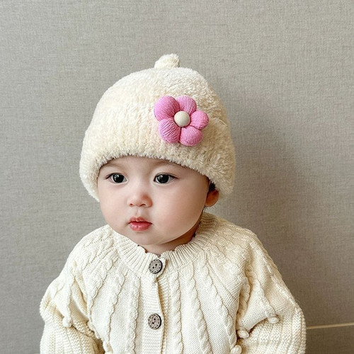 کلاه نوزادی پشمی گل نرم و گرم، مناسب نوزاد تا ۲۴ ماه