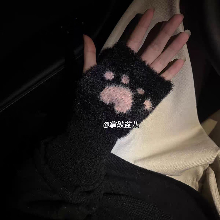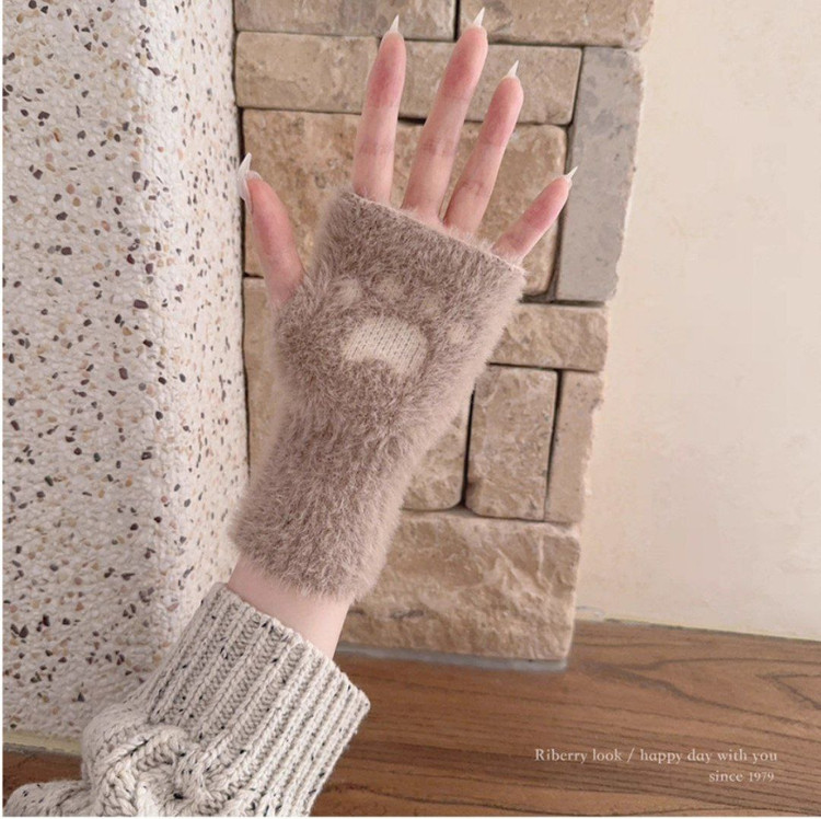 دستکش پشمی خز نیم انگشت پینترستی دخترانه