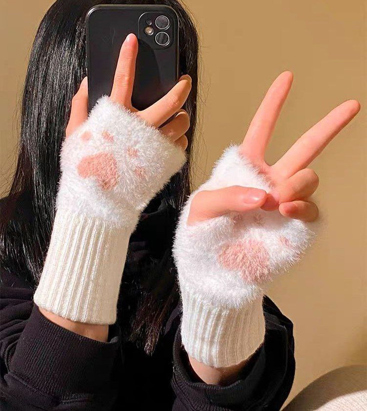 دستکش پشمی نیم انگشت پینترستی دخترانه